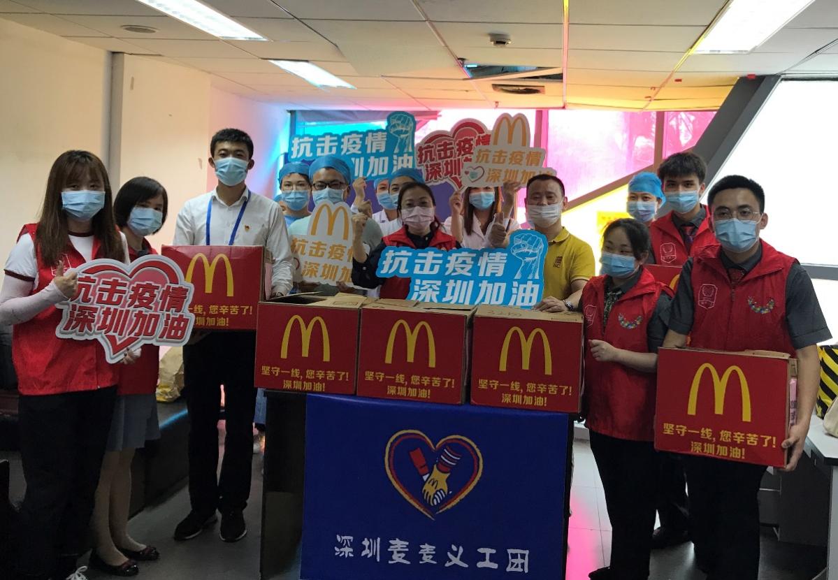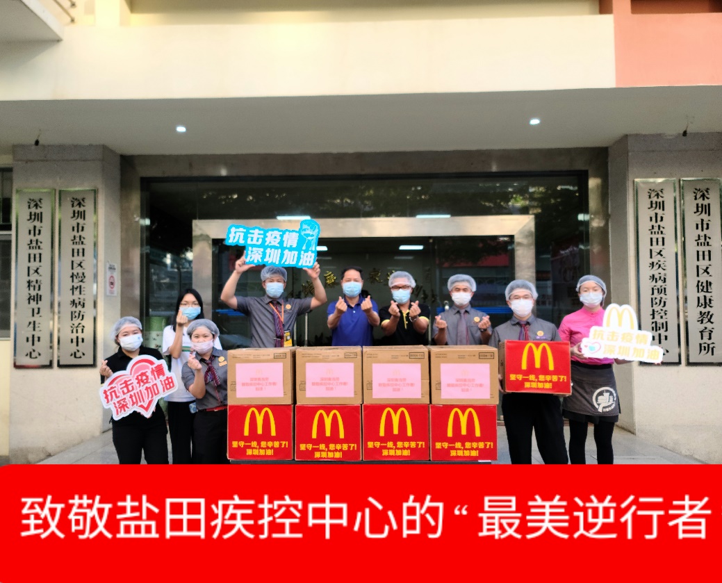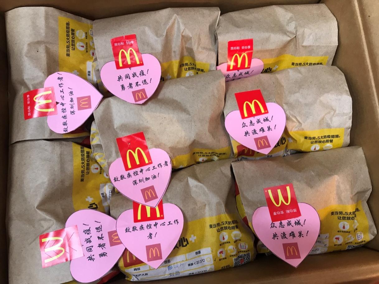 深圳麥當(dāng)勞“麥麥義工團(tuán)”小伙伴們向鹽田疾控中心防疫工作一線的醫(yī)護(hù)人員贈送愛心餐食