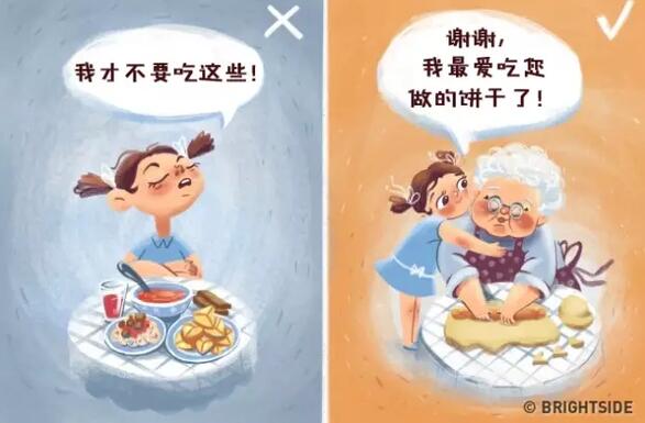 生活中有許多小事。例如,請他們擁抱并感謝奶奶做出美味的佳肴;提醒他們,得到幫助時要說謝謝,感謝爸爸媽媽所做的一切。