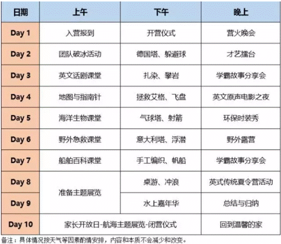 第八天、第九天·準(zhǔn)備航海作品展—沖浪挑戰(zhàn)—水上嘉年華—英式傳統(tǒng)夏令營