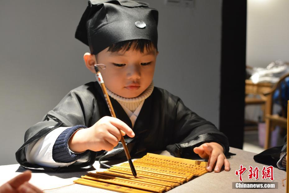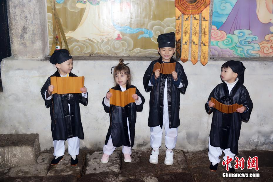 10月16日,在“道教名山”、世界自然遺產(chǎn)地江西上饒三清山,5名來(lái)自中外的萌娃身穿統(tǒng)一道服,手持竹簡(jiǎn),在三清宮跟著道教師傅朗讀《道德經(jīng)》、《弟子規(guī)》,學(xué)習(xí)太極拳、書(shū)法、古箏等中國(guó)傳統(tǒng)文化。這群萌娃中年齡最小的僅11個(gè)月,年齡最大也只有6歲。程希雪攝