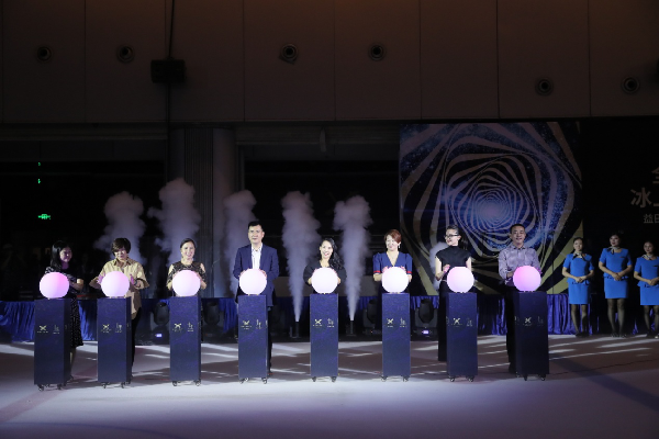 在倒數聲中,益田旅游商業(yè)集團副總裁孔德政、副總裁王蕊、益田假日廣場總經理劉玲與全明星滑冰俱樂部總裁王睿,gaga鮮語創(chuàng)始人馮敏, DISSONA全國營運總經理王立穎及VIP代表,共同按下激光裝置,10000只氣球組成的藍色鯨魚散落冰面,瞬間暈染為一片藍色海洋,也正式宣告“益田假日廣場十周年”系列活動的開啟。