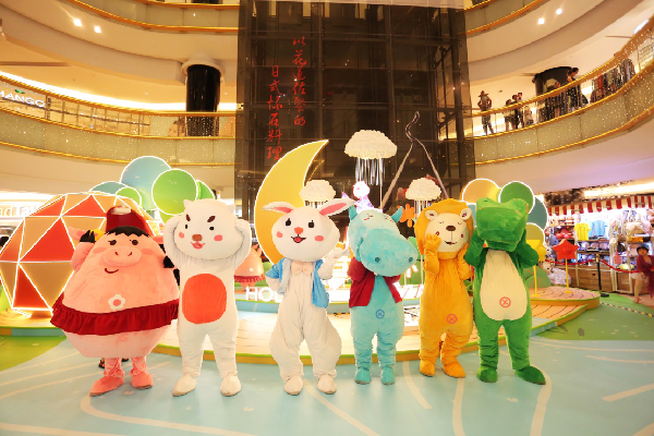 在這次公益行動中,益田旅游商業(yè)聯動包括深圳益田假日廣場在內的全國7大在營商業(yè)項目,聯手同行,為愛助力!這次行動也同期設計了代表7大商業(yè)項目的公益卡通形象,分別是甜甜、NITO、PINO、BOOM、MOKA、OLLI、CATHY,在光影秀結束后,7大IP形象在冰面上悉數亮相,“萌”動全場。