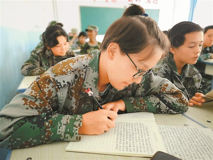 深喀一高學(xué)生身穿迷彩服在聚精會(huì)神上課。