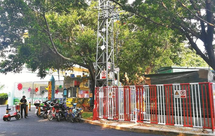 ▲讓家長擔(dān)憂的高壓電柜距離幼兒園門口不到5米。深圳晚報見習(xí)記者 高靈靈 攝