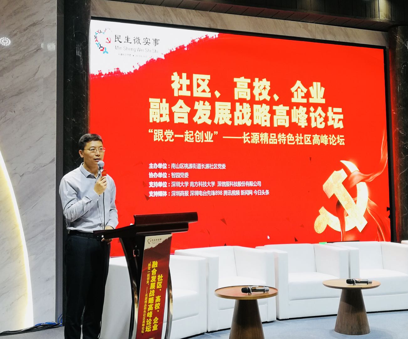 深圳新聞網(wǎng)訊10月30日,社區(qū)、高校、企業(yè)融合發(fā)展戰(zhàn)略高峰論壇在深圳市南山區(qū)智園 B1棟黨群服務(wù)中心大樓舉行,論壇由南山區(qū)桃源街道長源社區(qū)黨委主辦。本次論壇以“社區(qū)、高校、企業(yè)融合發(fā)展戰(zhàn)略”為主題,匯聚了來自社區(qū)、高校、企業(yè)的相關(guān)知名人士,共同探討融合發(fā)展策略,打造長源精品特色社區(qū)。桃源街道黨工委書記黃健,知名社會學(xué)家、深圳大學(xué)教授易松國,深信服科技股份有限公司黨委書記林彥,南方科技大學(xué)致誠書院副院長藍(lán)海等出席了論壇。