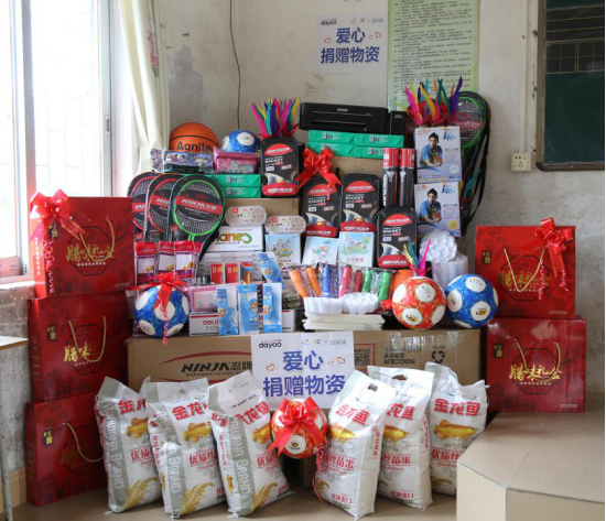在捐贈(zèng)儀式上,洋洋公益團(tuán)隊(duì)為橫槎小學(xué)的師生們送上籃球、足球、羽毛球、作業(yè)本、鉛筆、橡皮檫、文具盒、打印機(jī)等文體用品和教學(xué)用具,以及大米、臘腸等生活物資。橫槎小學(xué)謝校長(zhǎng)代表學(xué)校對(duì)愛心團(tuán)隊(duì)一行表示感謝,并將錦旗和學(xué)生用心勾勒的美術(shù)作品回贈(zèng)給碧桂園集團(tuán)廣清區(qū)域、廣州日?qǐng)?bào)大洋網(wǎng)等愛心代表。