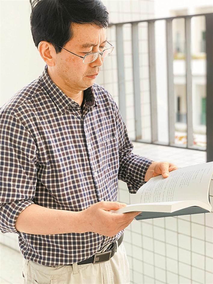 袁小林在翻閱《經(jīng)典唐詩英譯欣賞》。