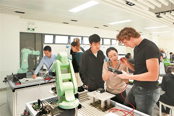 來自德國肯普滕國立第一職業(yè)學(xué)校的交換生在深圳參加技能培訓(xùn)。