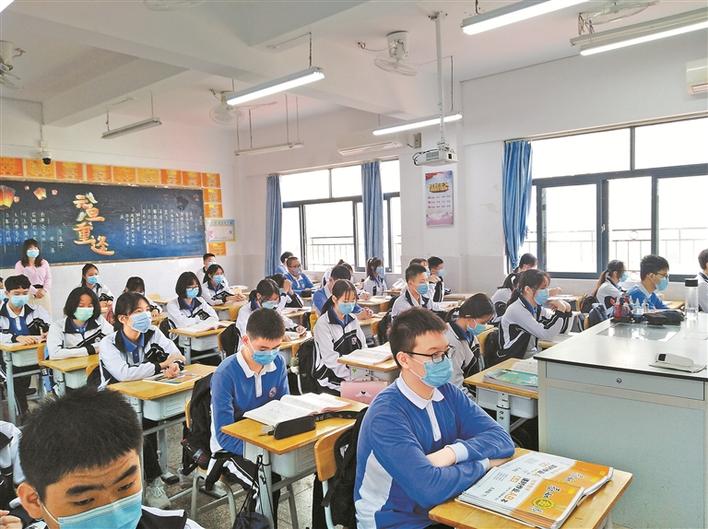 上午10∶30,南山外國(guó)語(yǔ)學(xué)校(集團(tuán))高級(jí)中學(xué)的學(xué)生們整理完住校宿舍用品后,相繼來(lái)到班級(jí)進(jìn)行自習(xí)。自習(xí)前在班主任的安排下首先進(jìn)行課桌椅的消毒,隨后發(fā)放口罩,每位學(xué)生一次性領(lǐng)取一周所用的10個(gè)口罩。