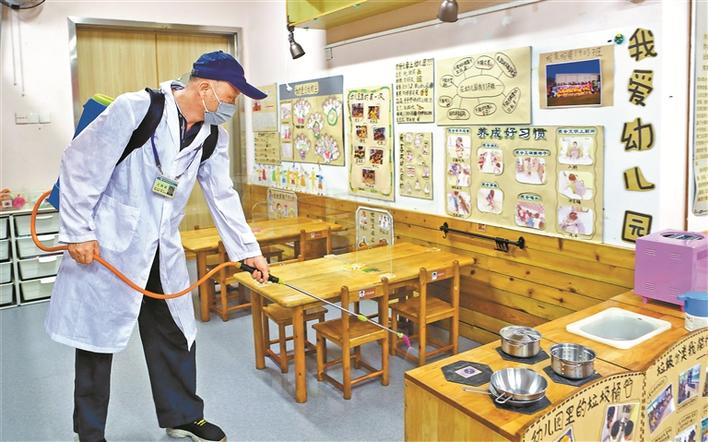 為做好開園準備,前日,南山區(qū)教育幼兒園聘請專業(yè)消殺公司對園區(qū)進行消殺。深圳特區(qū)報記者周紅聲攝