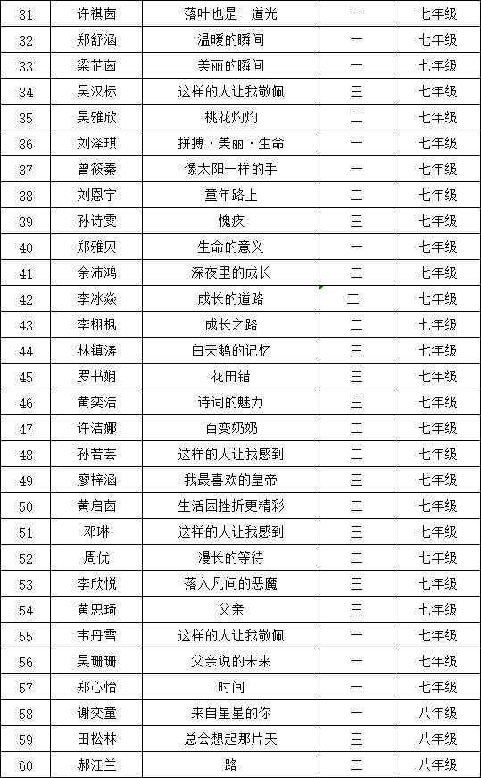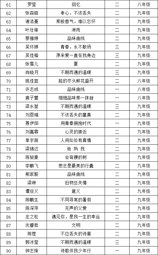 自2021年1月,活動(dòng)征稿啟動(dòng)以來(lái),獲得了深圳市廣大中小學(xué)生、教師、文學(xué)愛(ài)好者的熱烈響應(yīng)積極參與,吸引了深圳百余所學(xué)校的上萬(wàn)人關(guān)注報(bào)名。現(xiàn)公布深圳市紅桂中學(xué)晉級(jí)復(fù)賽名單如下:
