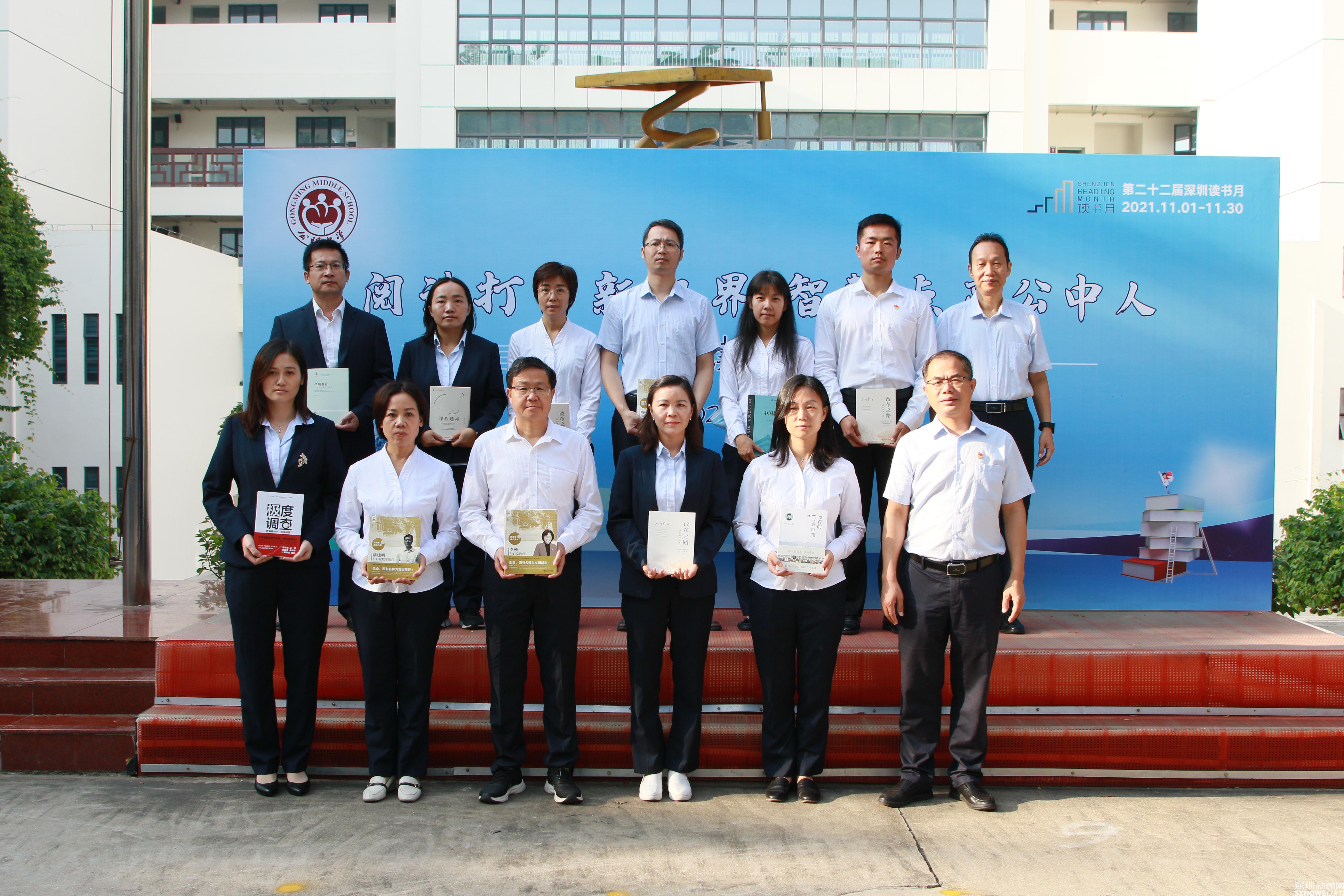 啟動儀式上,初二(15)班全體學(xué)生帶來的朗誦《我愿意 奮斗終生》,催人覺醒;深圳市閱讀推廣人范世華攜公明中學(xué)各年級閱讀之星代表——初三(8)李詩晨、初二(8)宛錚、初一(2)班胡立麒,共同向全校師生發(fā)出讀書、愛書的倡議;華建明校長、梁吉清副校長向?qū)W校各學(xué)科科組長贈書,希望科組長帶動備課組一起讀好書,研究書,用好書,通過博而精的閱讀提升人文素養(yǎng),建設(shè)學(xué)習(xí)型教師共同體,進而更好在學(xué)生心中種下讀書的種子。