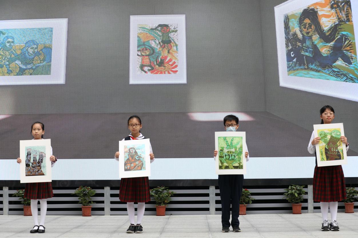 儀式中,學生代表將云展館的文創(chuàng)禮品贈予了各位嘉賓,6個美術(shù)類社團也向嘉賓們展示了異彩紛呈的美術(shù)作品。開館儀式在掌聲中圓滿結(jié)束。