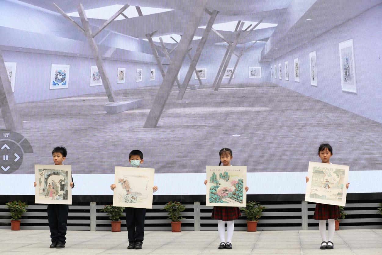 與開館和展覽同時推出的,還有“榕”美術(shù)館的云展館。云展館以新媒體形式,擴大了展覽范圍,使得學校的美術(shù)美育成果得以向外部展示。推出之際,學校舉行了云展館的剪彩儀式。解署昱校長致辭并宣布開館,福田區(qū)教科院藝術(shù)辦林影萍主任、解署昱校長、劉權(quán)祥副校長、姚紅霞副校長為云美術(shù)館剪彩,并向全校學生贈送了云展館資料。