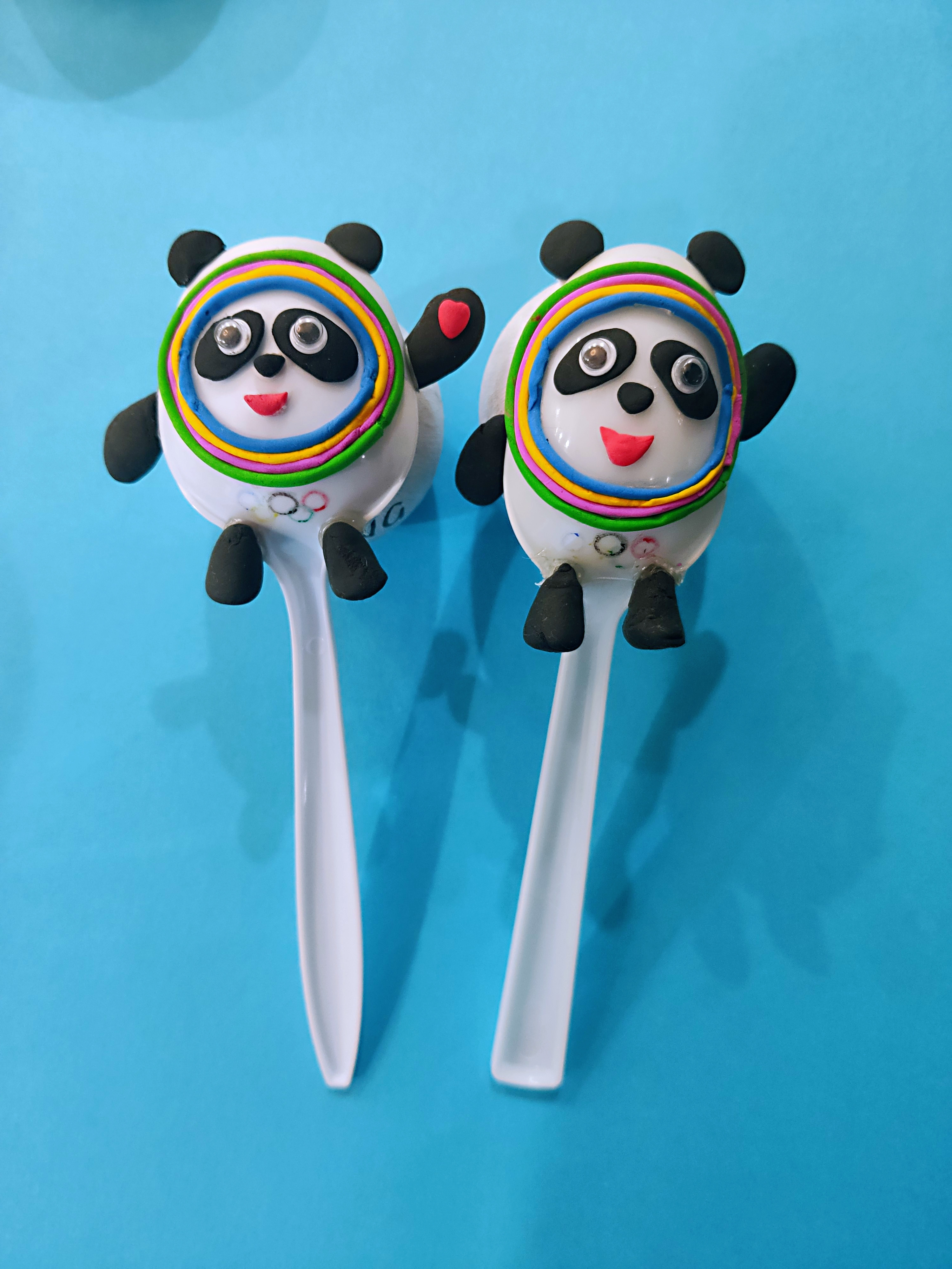 接著我發(fā)現(xiàn)身邊的很多東西都可以變廢為寶做成冰墩墩,我把用過的一次性餐勺洗干凈,做成了餐勺冰墩墩;打乒乓球時(shí),發(fā)現(xiàn)了廢舊的乒乓球,回家洗干凈消毒,做成乒乓球冰墩墩;我走在路上,看到了一塊橢圓形的石頭,把它洗凈消毒,做成了石頭冰墩墩。
