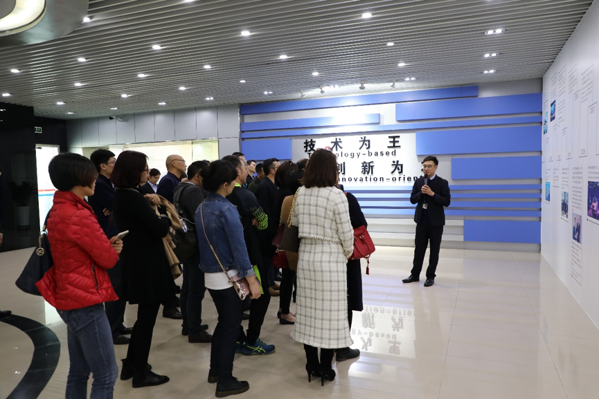 1月13日,在結(jié)束當(dāng)天的課程后,石青同學(xué)作為領(lǐng)隊(duì),帶著北大匯豐EMBA1617班幾十位同學(xué)來到深圳市龍崗區(qū)華南城傲基電子商務(wù)股份有限公司參訪交流。