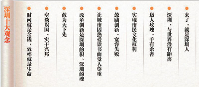 縱觀深圳城市的發(fā)展,經(jīng)歷了拼經(jīng)濟、拼管理和拼文化三個發(fā)展階段。而內(nèi)涵豐富的“十大觀念”則貫穿、覆蓋了這三個階段的全過程。