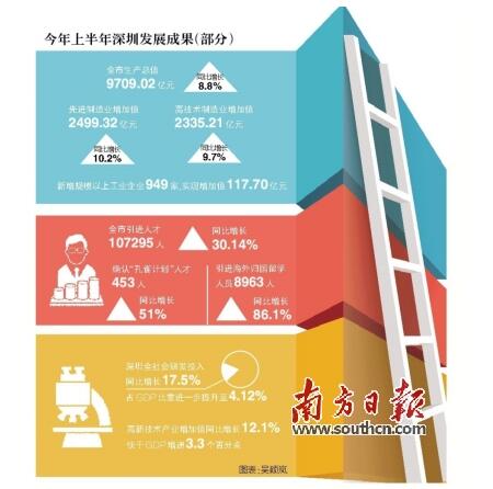 創(chuàng)新是深圳率先實現(xiàn)成功轉型的亮麗名片,是深圳率先實現(xiàn)動力轉換的制勝秘訣。如果說,作為特區(qū),深圳之“特”過去更多地體現(xiàn)在政策探路,那么,現(xiàn)在則更多體現(xiàn)在轉型創(chuàng)新。近年來,深圳經濟特區(qū)把創(chuàng)新作為城市主導戰(zhàn)略,先后制定了全國首部國家創(chuàng)新型城市總體規(guī)劃和促進科技創(chuàng)新的地方性法規(guī),出臺自主創(chuàng)新“33條”、創(chuàng)新驅動發(fā)展“1+10”若干措施等一系列政策措施。經過多年不懈的努力,深圳創(chuàng)新驅動發(fā)展取得了積極成效,創(chuàng)新正加快向高端前沿邁進,從跟跑、并跑向領跑躍升。在創(chuàng)新的驅動下,深圳實現(xiàn)了新常態(tài)下動力轉換和新一輪轉型升級,保持了有質量、有效益、可持續(xù)的發(fā)展。事實為證:今年上半年,深圳全社會研發(fā)投入增長17.5%,占GDP比重進一步提升至4.12%;高新技術產業(yè)增加值增長12.1%,快于GDP增速3.3個百分點,呈現(xiàn)出“逐季攀高、質量提升、結構優(yōu)化、動力增強、趨勢向好”的鮮明特點。
