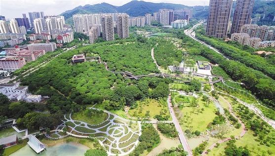 截至2016年底,深圳公園總數(shù)達921個,功能多樣、覆蓋全面的“公園之城”基本形成。圖為香蜜公園內綠色盎然。 深圳商報記者 鐘華登攝
