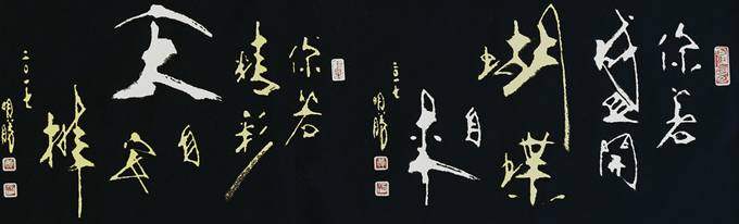 黃明勝從事書法與篆刻鉆研已逾30年,他認為:美感的建立才是學習藝術的第一步,而非技法;奠定了美感的基礎再從中建立自己的價值,隨波不逐流。秉持『自出新意,不踐古人』的理念,書寫從未臨帖,歷經數(shù)十載,而今創(chuàng)作出融合中國傳統(tǒng)藝術與現(xiàn)代風格的書法創(chuàng)新體裁—『書畫體』。