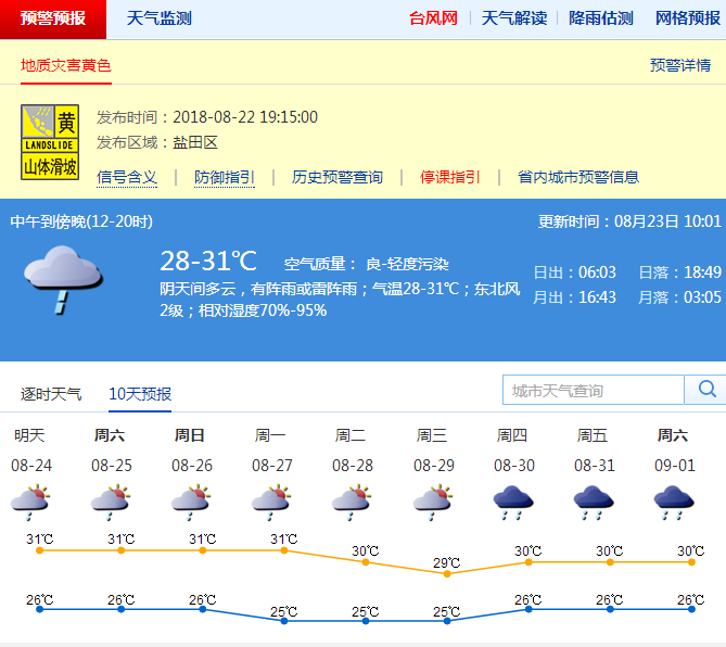 市氣象臺(tái)預(yù)測(cè),24日-29日,多云到陰天,有陣雨或雷雨,部分時(shí)間雨勢(shì)較大。最低氣溫26℃左右,最高氣溫31℃左右。近來(lái)深圳降雨較多,容易導(dǎo)致泥土松動(dòng),市民外出應(yīng)注意遠(yuǎn)離邊坡等危險(xiǎn)地帶。(記者 李秀瑜)