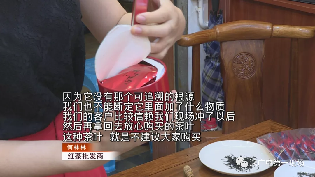 今天,記者也來到位于景田片區(qū)的中國茶宮茶葉批發(fā)市場,一家長期經(jīng)營紅茶的店家介紹,他們店就賣有正山小種和白茶,記者也拿出了劉女士在停車場購買的茶,和店家銷售的正山小種做了對比。店家介紹,停車場售賣的正山小種茶,一小包為標(biāo)準(zhǔn)的5克包裝,分量倒沒有問題,但茶葉外觀和口感上就有說頭了。