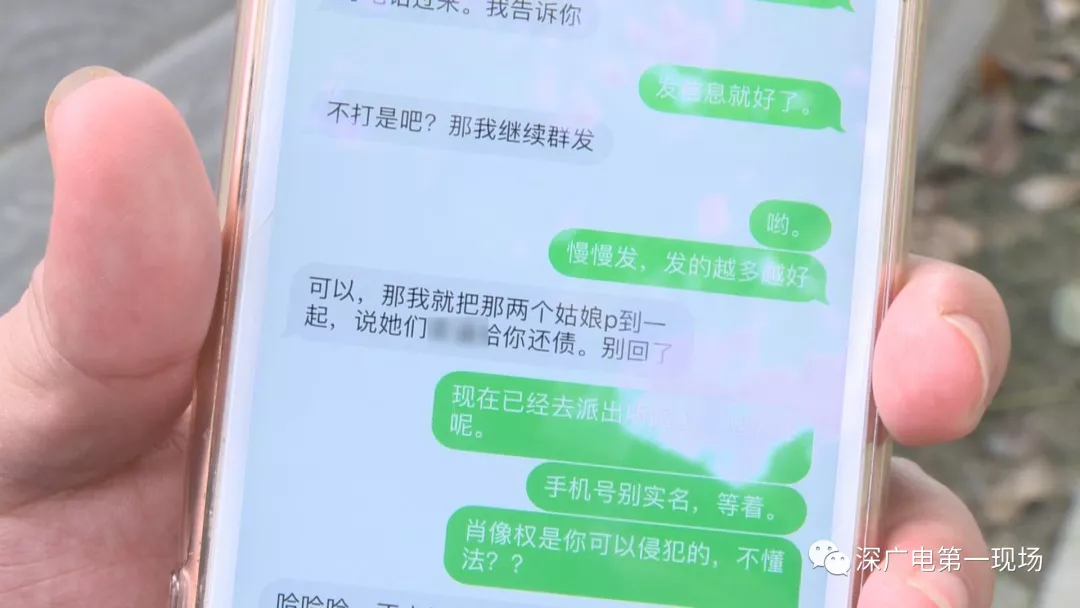 今天上午,記者在龍崗坪地一小區(qū)外見到了盧先生,他告訴記者,最近手機收到這樣一張圖片,圖片恰巧是他的一位女性朋友頭像,下面還配上一些關(guān)于“幫盧先生還債”的不實文字信息,內(nèi)容是盧先生已經(jīng)成了詐騙犯,現(xiàn)在正在當(dāng)“洗腳妹”幫盧先生還賬,圖片上還有盧先生的個人資料和電話號碼。