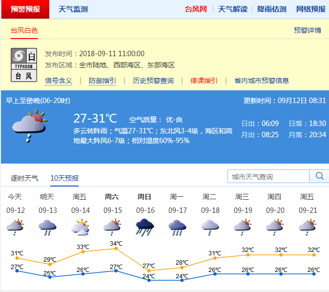 深圳新聞網(wǎng)9月12日訊(記者 施冰冰)記者從深圳市氣象局了解到位于臺灣東南部海面的熱帶擾動已于10日8時加強為熱帶低壓,預計該熱帶低壓將于11日進入南海,并加強為今年第23號臺風,12日下午到夜間從深圳市偏南方200-250公里的海面上掠過,13日白天在廣東電白到海南瓊海之間的沿海地區(qū)登陸。此外,今年第22號臺風“山竹”已于7日夜間生成,10日14 時位于深圳市東南方約3500公里的西北太平洋洋面上,中心附近最大風力13級。未來將以30公里左右的時速向偏西方移動,最強可達超強臺風,15日進入南海,16-17日嚴重影響廣東。
