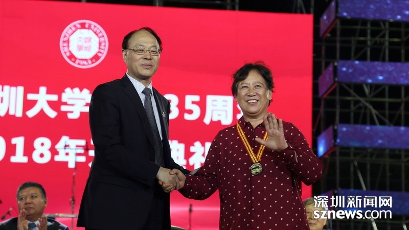 深大黨委書記劉洪一為榮休獎(jiǎng)杰出貢獻(xiàn)獎(jiǎng)獲得者代表鄭易之教授頒獎(jiǎng)