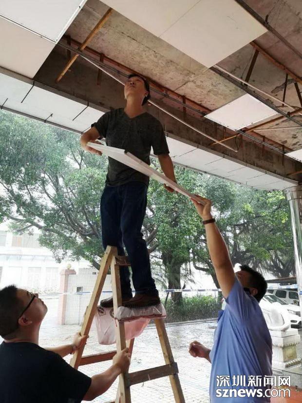 邊檢技術(shù)民警在搶修被強臺風破壞的現(xiàn)場設施