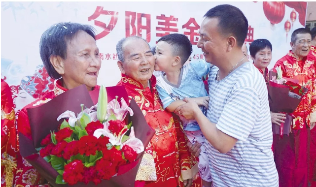 15對老年夫婦的子女還為各自父母獻(xiàn)上鮮花,送上真摯祝福,表達(dá)對父母養(yǎng)育之恩的感激之情,并紛紛合影,留下美好、難忘的瞬間。