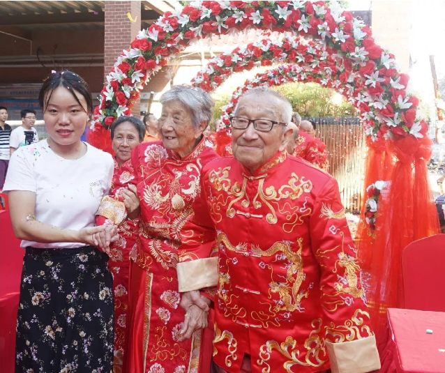 蛇口街道南水社區(qū)居民耿玉璽與王月鳳兩位老人已經(jīng)攜手走過69年,一直有個遺憾藏在心里——兩人年輕時沒有舉辦過婚禮,連一張結(jié)婚照片都沒有。日前,二老的遺憾得到彌補,愿望得以實現(xiàn)。南水社區(qū)黨委以開展民生微實事為契機(jī),為包括耿玉璽與王月鳳夫婦在內(nèi)的社區(qū)15對老年夫婦舉辦了一場別開生面的夕陽美集體金婚慶典活動。眾多嘉賓及老人的親朋好友、子女兒孫到場見證,獻(xiàn)上掌聲和祝福。