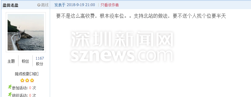 深圳新聞網(wǎng)9月21日訊(記者 施冰冰)“北站停車三天收費412元,這不是暴利嘛?!”近日,深圳一網(wǎng)友發(fā)帖吐槽深圳北站的收費標準,他認為深圳市中心的商業(yè)寫字樓一天封頂也不過60元,高鐵站社會停車場作為老百姓的公共交通基礎(chǔ)設(shè)施,憑什么比市中心的商業(yè)寫字樓還貴2倍多?(帖文:《 北站社會停車場作為老白姓的公共交通基礎(chǔ)設(shè)施,憑什么比市中心的商業(yè)寫字樓還貴2倍多》)