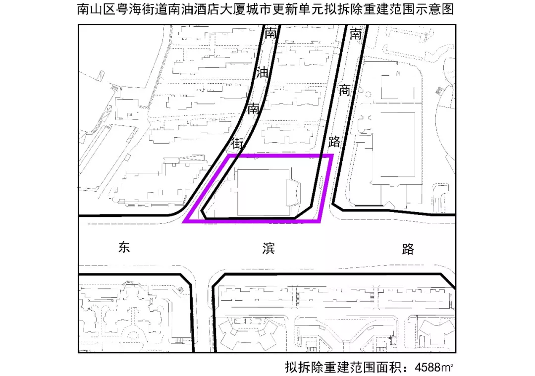 9月18日,南山區(qū)城市更新局在官網(wǎng)上發(fā)布了“關(guān)于《2018年深圳市南山區(qū)城市更新單元計(jì)劃第五批計(jì)劃》的公告”,南油酒店位列其中。公告明確指出,南油酒店擬更新方向?yàn)樯虡I(yè)用地,擬拆除范圍用地面積共4588平方米,擬拆除重建用地范圍內(nèi)應(yīng)落實(shí)不少于1376平方米用地用于建設(shè)城市基礎(chǔ)設(shè)施、公共服務(wù)設(shè)施或者城市公共利益項(xiàng)目,擬貢獻(xiàn)率約為30%。