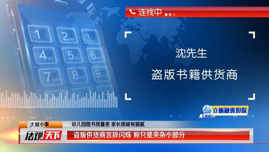 為了證明自己并未與供貨商有所勾結(jié),園長當場給供貨商沈先生打了電話,面對大家的質(zhì)問沈先生言辭閃爍。面對園長的質(zhì)疑,這名供貨商剛開始只承認自己所供的書籍只有一小部分是盜版,不過,在園長的質(zhì)問下,最后他終于承認,自己提供的書全部都是盜版書籍。