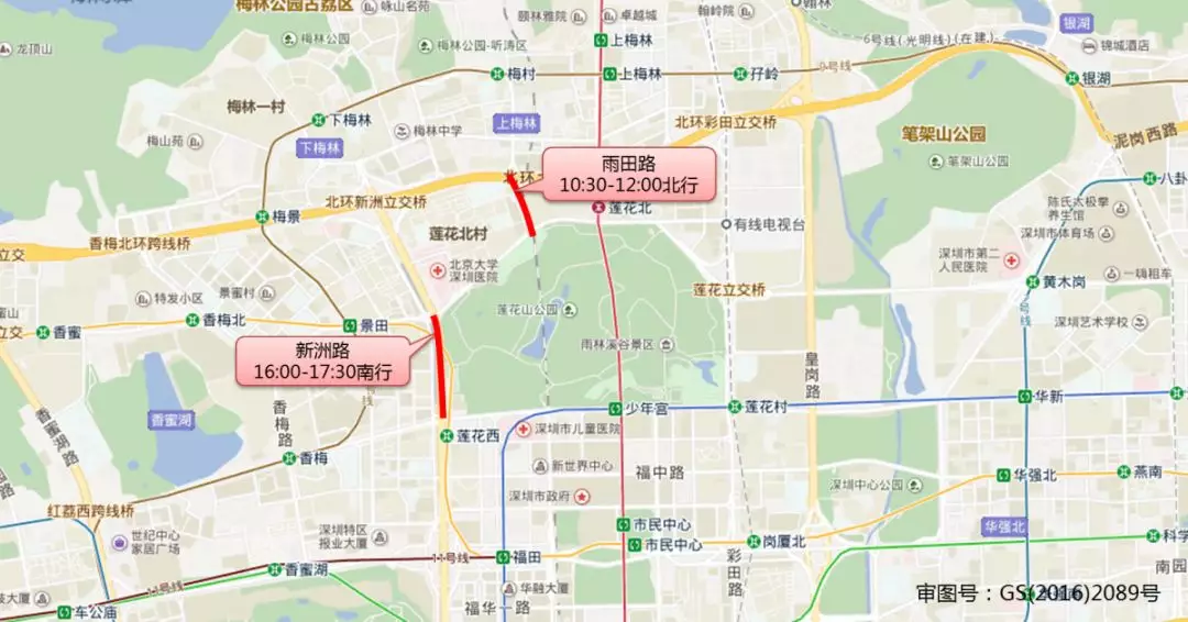 寶安大道(14:00-15:00南行、16:00-18:00南行、17:00-18:00北行)