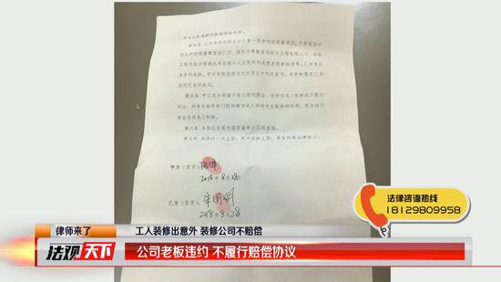 朱先生本以為雇傭雙方簽署了賠償協(xié)議就能如期得到賠償金,不料蜂巢裝飾有限公司的老板陽鋒卻違約不履行。無奈之下,朱先生只能再次找到我們,期望在記者和《法觀天下》法援律師的溝通下,蜂巢裝飾有限公司的老板陽鋒能把賠償金如約支付給他。隨后,記者與《法觀天下》嘉賓律師趙乙橋來到龍華區(qū)觀瀾街道金通盛大廈14樓的蜂巢裝飾有限公司,在這里我們見到了老板陽鋒。他表示,因?yàn)楣矩?cái)務(wù)的種種原因,第一筆賠償款的支付有所延遲。但是在中秋節(jié)之前,一定會(huì)把款項(xiàng)支付給朱先生。