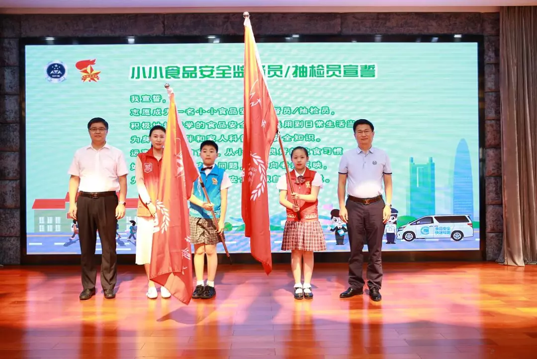 同時,校園內同步開展“食品安全進校園”活動,活動以“食安活力營”比賽方式組織學生參與食安科普知識學習競賽,吸引了大批學生參與,現場氣氛熱烈。此外華強北街道快檢車也開進校園,現場為師生演示食品快檢操作,進行科普宣傳。