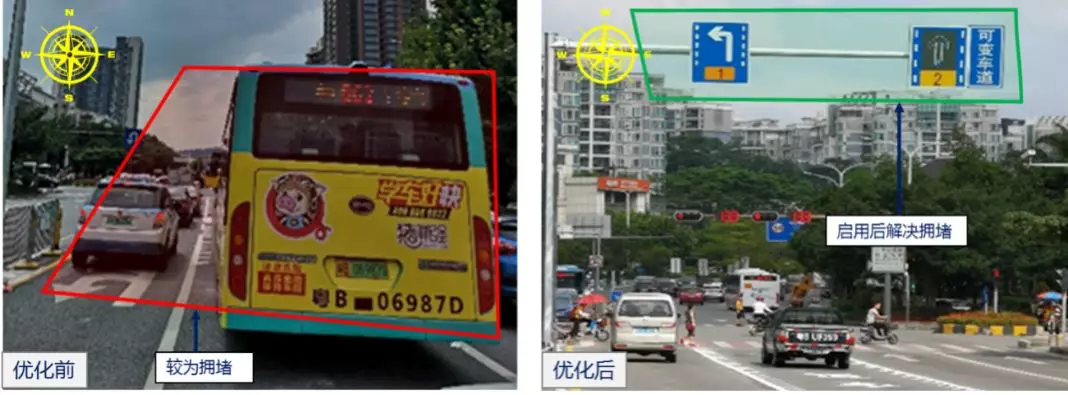 2.龍翔大道/吉祥路口啟用可變車道,相關(guān)路口平均周期減少約10秒 為解決龍翔大道/吉祥路口擁堵問題,深圳交警對龍翔大道/龍城大道、龍翔大道/建設(shè)、龍翔大道/吉祥、龍翔大道/如意等4個路口實(shí)施可變車道及燈控掉頭口綜合管控措施,緩解上述路口平峰與高峰之間存在的分時段排隊不均、掉頭車輛與過街行人交織隱患問題,優(yōu)化措施實(shí)施后,相關(guān)路口的平均周期減少約10秒。 龍翔大道/吉祥路口南進(jìn)口可變車道運(yùn)行情況點(diǎn)贊