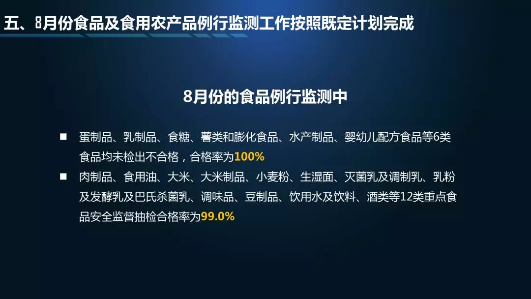 8月份食品及食用農產品例行監(jiān)測工作按照既定計劃完成