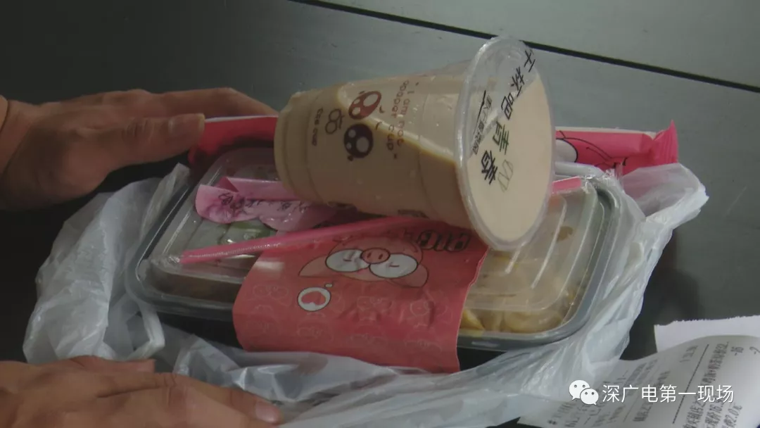 今天中午,記者從外賣平臺上隨機選取了幾家餐廳,分別購買了四份外賣,并配了冷飲。不過第一份外賣送上門,記者就發(fā)現(xiàn)冷飲與熱菜被裝在了同一個袋子中。