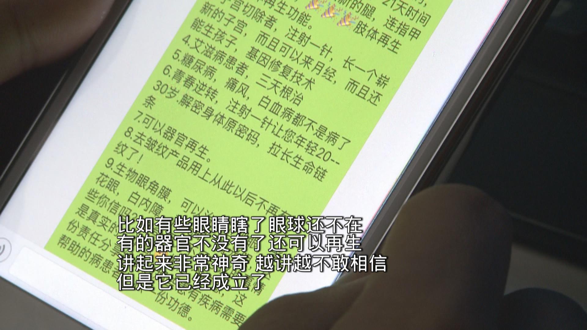 “先機(jī),先機(jī),改變?nèi)祟惷\(yùn)的生物科技”,這條號(hào)稱改變患者命運(yùn)的短信在一些微信群里流轉(zhuǎn),短信內(nèi)容號(hào)稱只要打一針,就能治愈身體上所有的疾病,其中包括癌癥、肢體再生、子宮再生、糖尿病、青春逆轉(zhuǎn)等,還呼吁將短信轉(zhuǎn)給有需要的患者,并表示向全國(guó)招募合伙人。