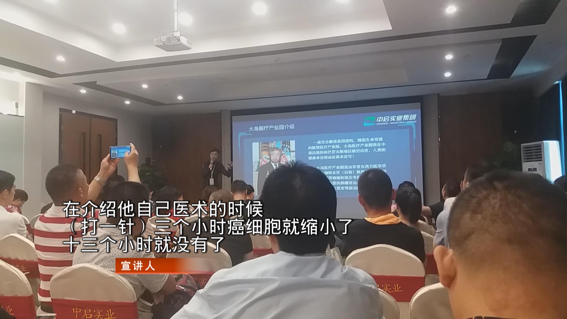 宣講人推廣的重磅項(xiàng)目是,企業(yè)跟一位姓白的教授合作的大島醫(yī)療產(chǎn)業(yè)園。她表示這位白教授因?yàn)闅v史原因失去了國(guó)籍,只能滯留在中俄邊界,因此大島醫(yī)療產(chǎn)業(yè)園也只能設(shè)在中俄邊界。