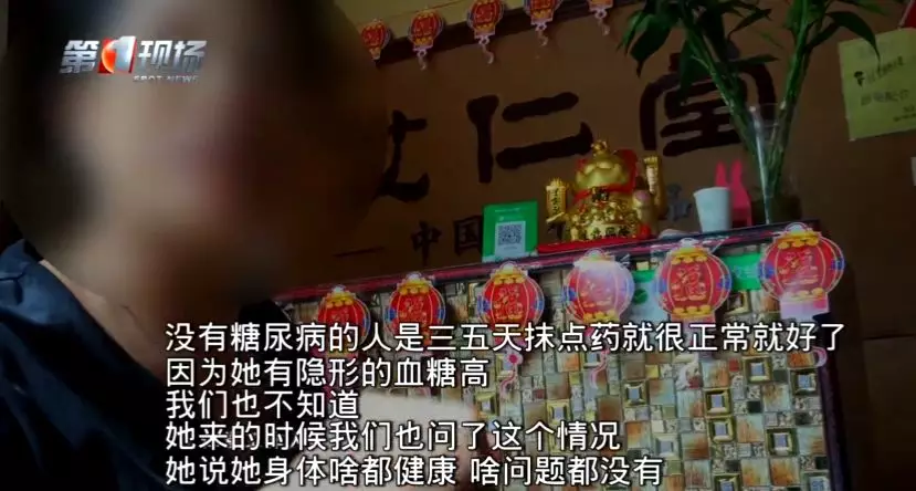 隨后,記者也陪同呂女士來到了鹽田區(qū)的這家艾仁堂養(yǎng)生館,呂女士燙傷事發(fā)時在店的工作人員承認(rèn)了確有其事,但辯稱在艾灸過程中燙傷是時常發(fā)生的,另外,呂女士燙傷的如此嚴(yán)重,是因為她患有糖尿病。