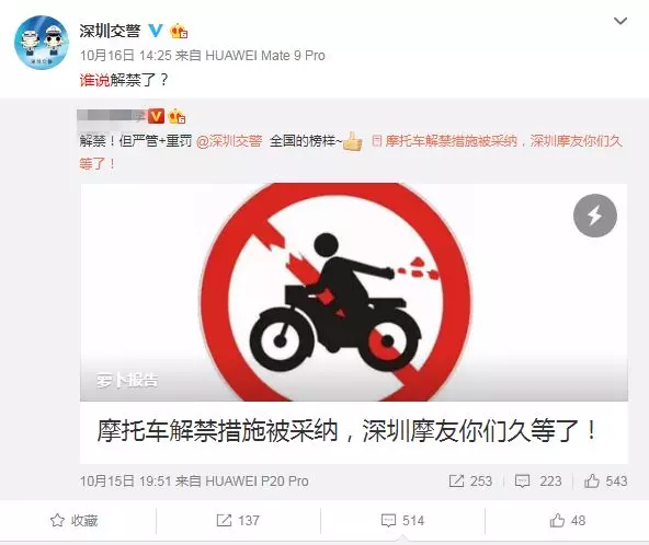深圳從未如網(wǎng)上所說要對摩托車解禁,并將繼續(xù)實施禁摩管理政策。目前,對于在原關(guān)外部分交通不便的偏遠(yuǎn)地區(qū),為了市民出行的便利,是否適度放開“禁摩令”我們也在進(jìn)一步研究之中。同時,市民可以在網(wǎng)上提出合理的管理建議和意見,為將來深汕合作區(qū)試點多元化管理建言獻(xiàn)策,現(xiàn)深圳暫不考慮解禁。