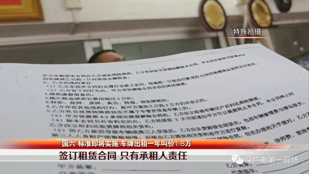 車牌、指標(biāo)的錯(cuò)位市場(chǎng),衍生了車牌出租的利益。二手車行在這過(guò)程中處于主導(dǎo)的地位,他們規(guī)定在車牌租用之前,承租人需要簽訂一份租賃合同,按理說(shuō)合同應(yīng)該劃分雙方的責(zé)任,然而記者發(fā)現(xiàn),合同明確指出了租牌者違約應(yīng)當(dāng)承擔(dān)的責(zé)任,條款多達(dá)10多項(xiàng)。