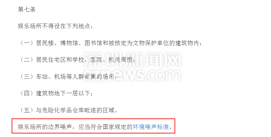 此外,該管理?xiàng)l例還對(duì)娛樂場所的邊界噪聲做出了明確規(guī)定,要求其邊界噪聲應(yīng)當(dāng)符合國家規(guī)定的環(huán)境噪聲標(biāo)準(zhǔn),即睡眠30分貝。
