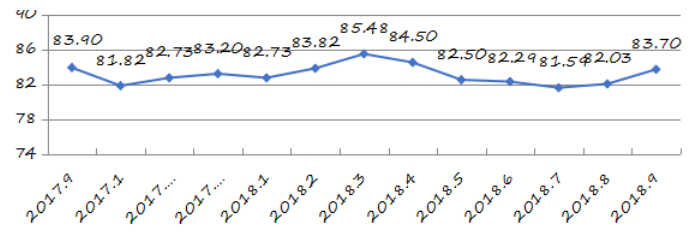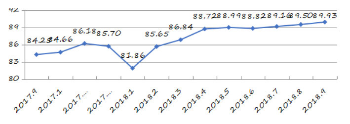 國家統(tǒng)計局深圳調(diào)查隊編制9月份深圳市城市交通文明指數(shù)為87.02分,比上月增加0.05分,比上年同期增加2.06分;深圳市城市交通文明進步指數(shù)為-0.05 % (見圖1)。