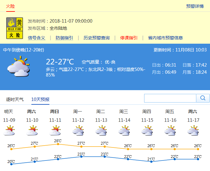 市氣象局發(fā)布未來十天天氣預報(數據更新于11月08日10時03分)