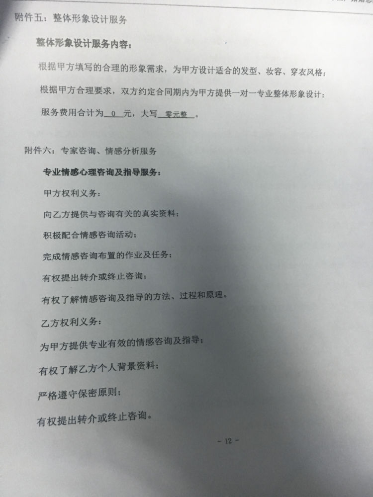 8位里面見(jiàn)了5位,還沒(méi)有找到適合的,劉小姐開(kāi)始著急。她向紅娘咨詢,紅娘認(rèn)為是劉小姐的形象不好,并建議她做價(jià)值3萬(wàn)塊錢(qián)的個(gè)人形象設(shè)計(jì)?!拔乙詾楹贤锩娴恼w形象設(shè)計(jì)服務(wù)就是包含現(xiàn)在所需要的形象設(shè)計(jì),不然我會(huì)花將近5萬(wàn)元去見(jiàn)幾個(gè)男的?”劉小姐認(rèn)為紅娘故意誤導(dǎo),并直言她形象不好,對(duì)她打擊很大,所謂的個(gè)人形象設(shè)計(jì),是引誘她變相增加消費(fèi)。